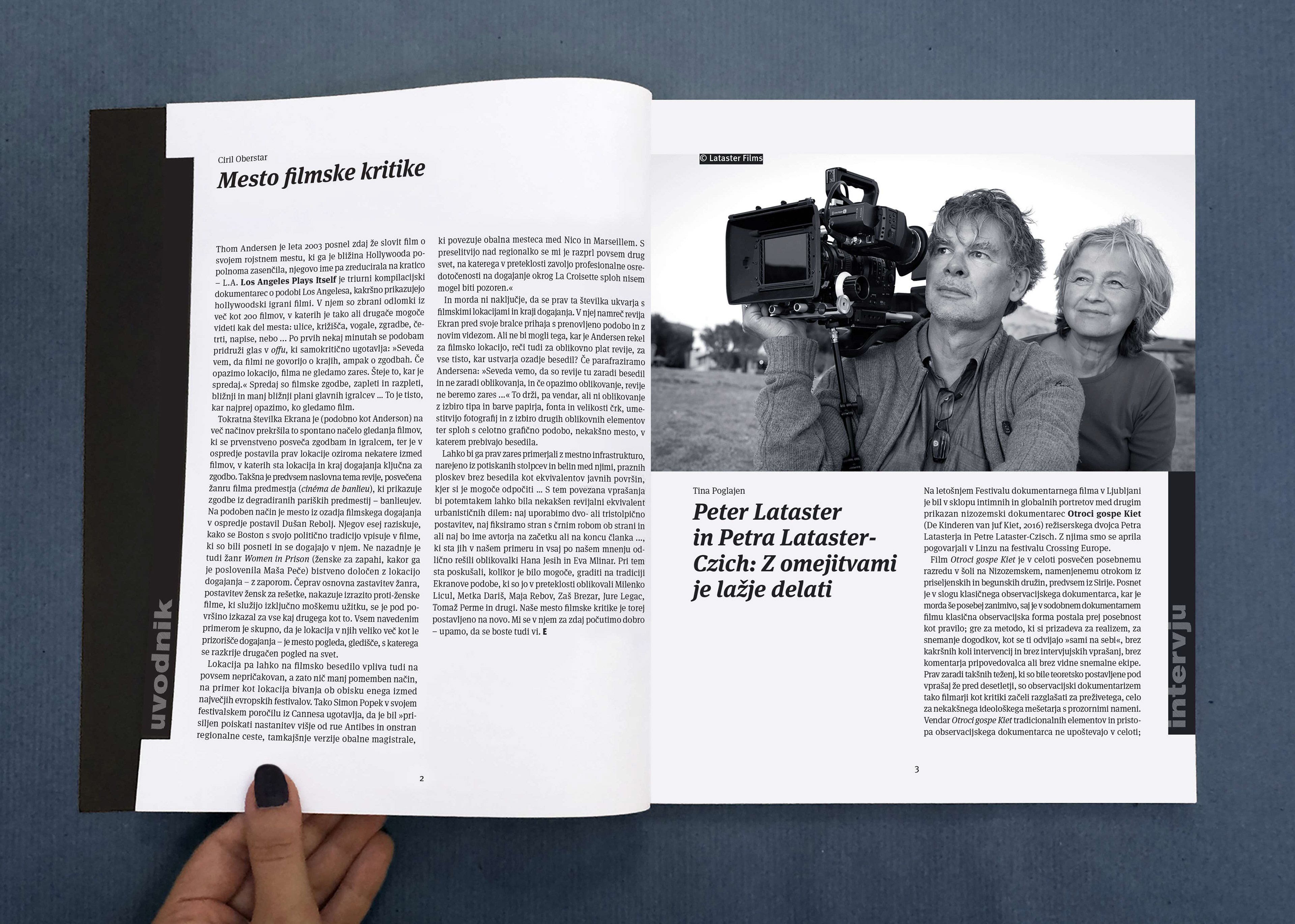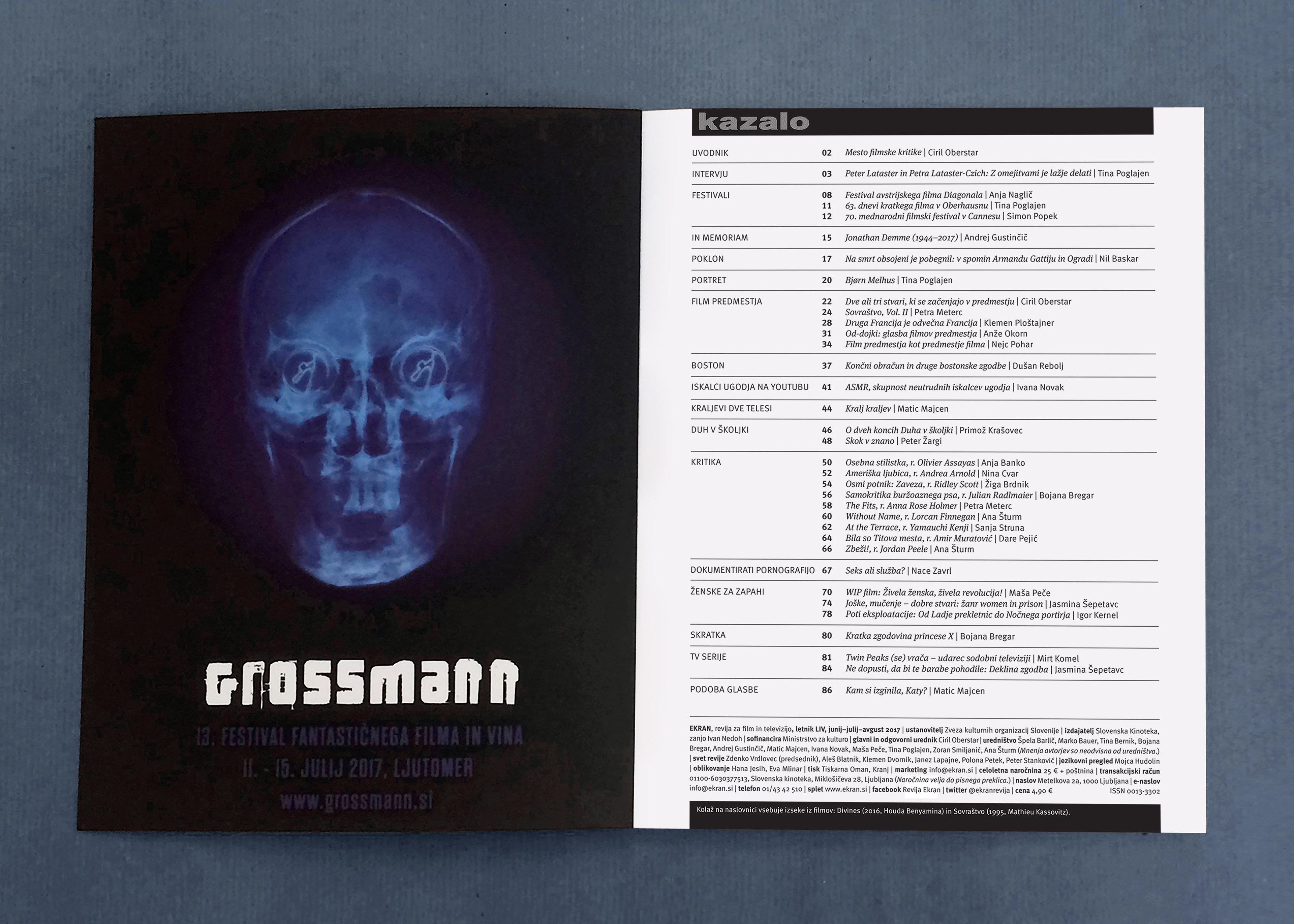 Re-design of Ekran, a monthly magazine for TV and film, that brings a general overview on contemporary film production (mainstream and independent) while also giving greater attention to Slovene film production. Ekran, Magazine for Film and Television was established in 1962 and is by far the most relevant Slovene film magazine of all time and also the one with the longest tradition. Throughout its history it has been a home for many generations of Slovene film critics as well as open towards foreign writers. Collaboration with graphic designer and illustrator Hana Jesih. We made a new logo, new layout and designed a collage-style cover, with an emphasis on specific film genre, theme or scene from a movie.