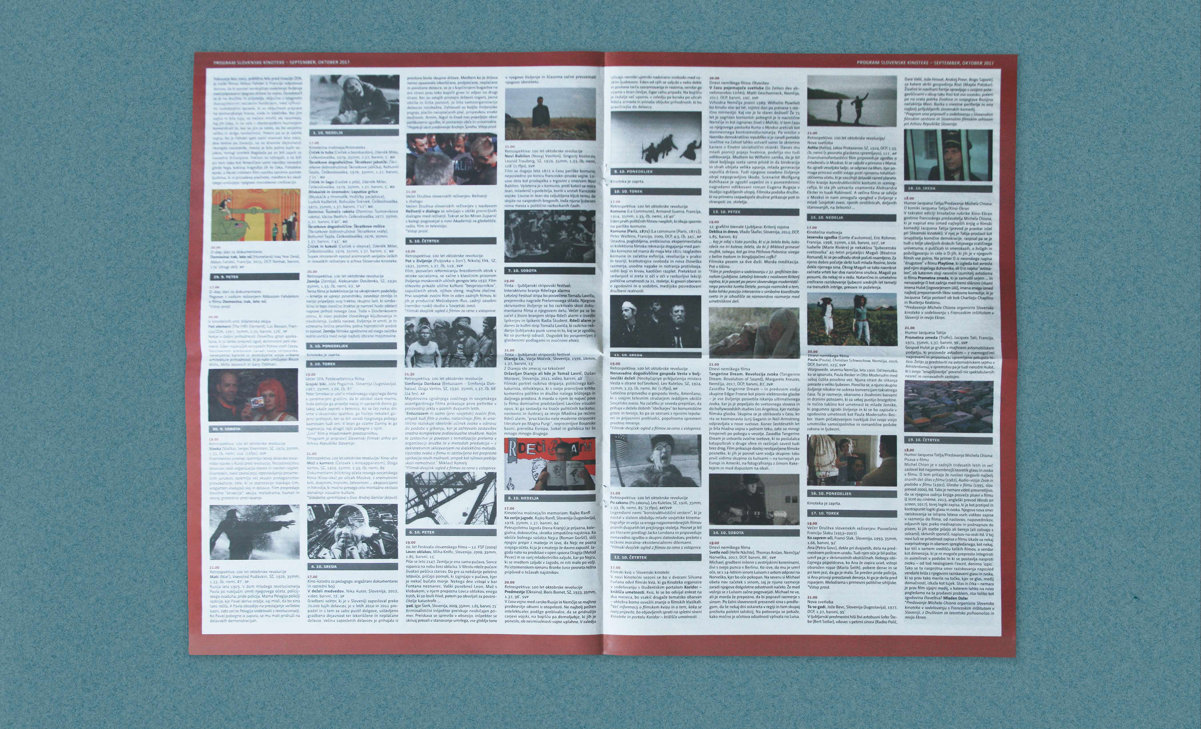 Re-design of magazine Kinotečnik, client: Slovenska kinoteka (Slovenian Cinematheque), collaboration with Hana Jesih, 2017 / Re-design of a magazine for the Slovenian Cinematheque. Publication presents the Slovenian Cinematheque, their events and their current program of cinema auditorium. It also include critiques and reports on old and contemporary films. Magazine release every two month, each time with different main topic. Collage-cover & typography for titles are visually based on the theme of the selected issue.
