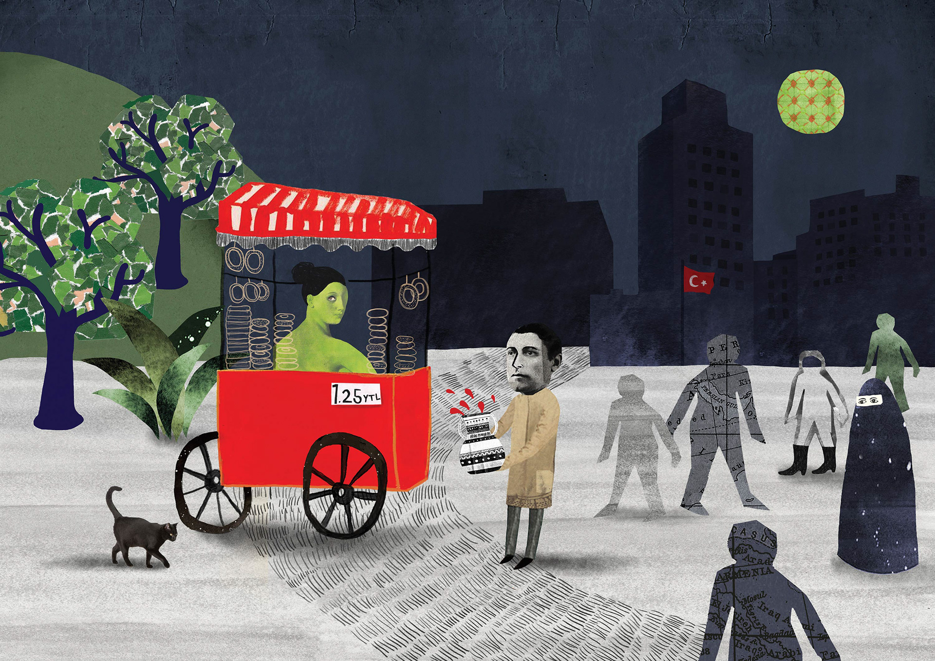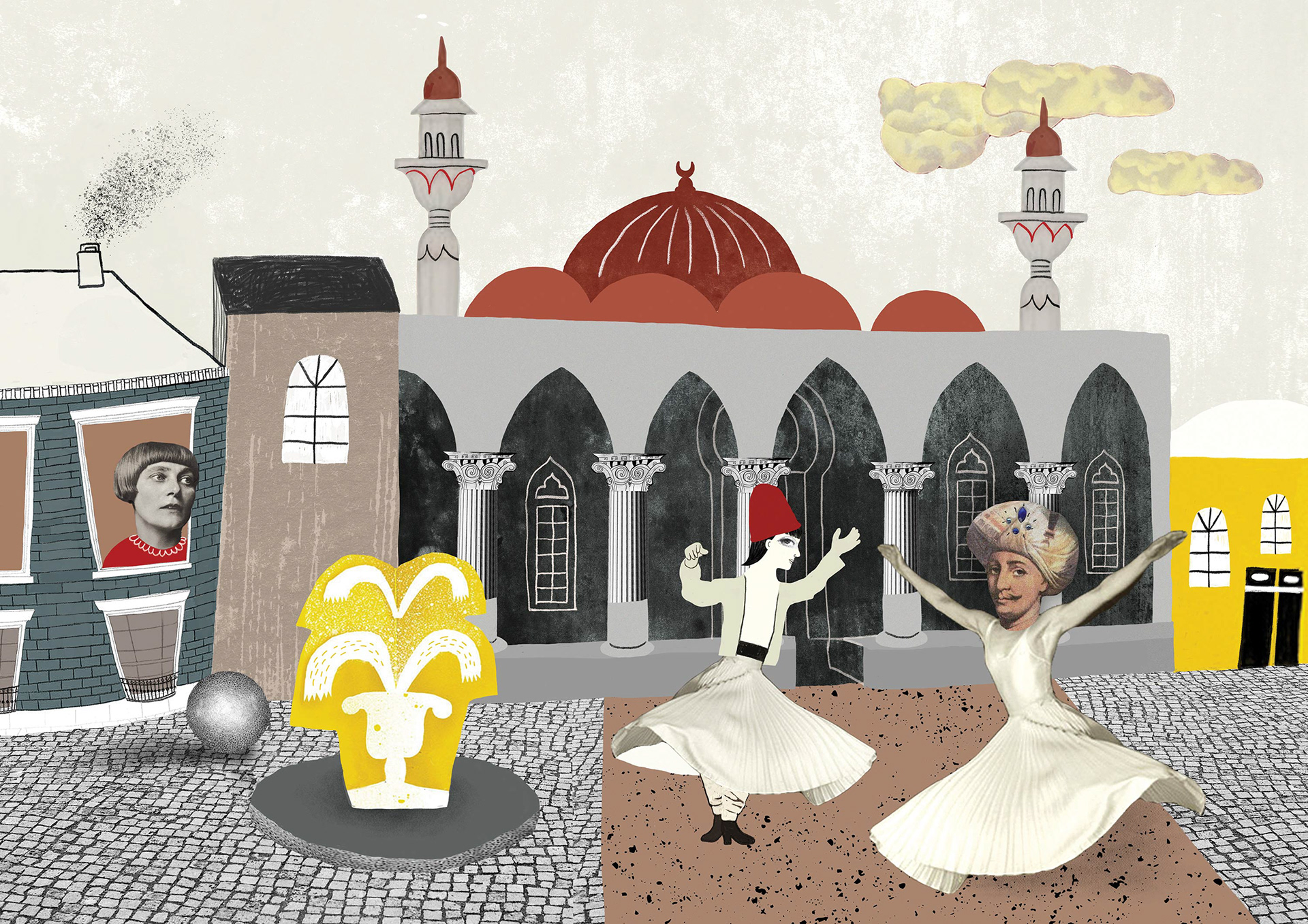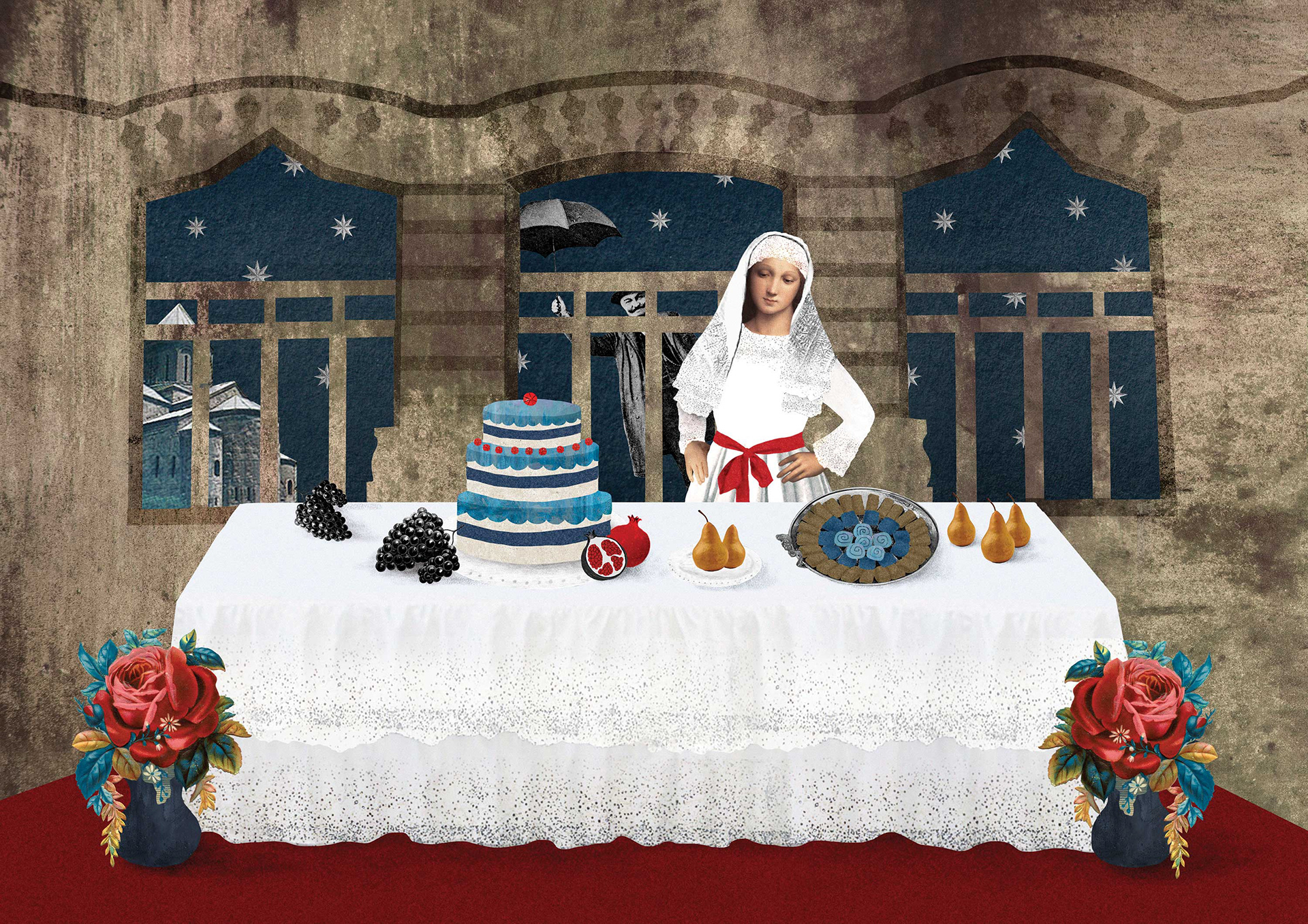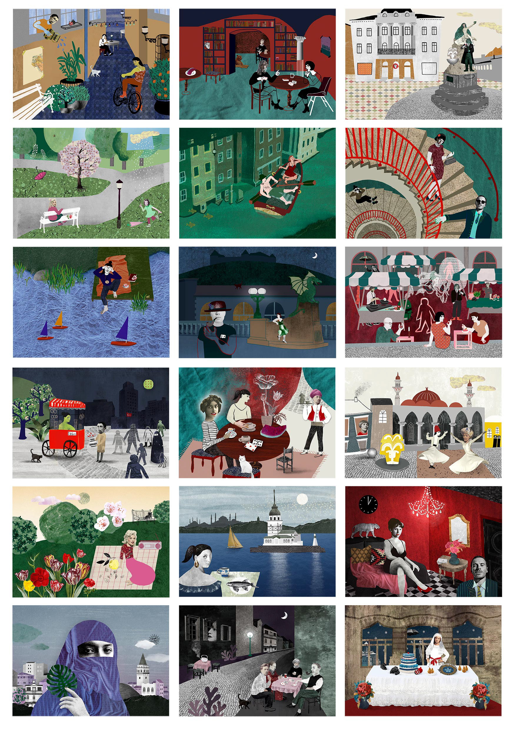 Project called "Impressions" is an artistic correspondence, a dialogue with my collegue, visual artists Hana Jesih. Using e-mail, we exchanged visual impressions, representing our experiences and perceptions of the culture, society, community and diversity of the cities we lived in during that time (Hana in Ljubljana, me in Istanbul). The result are collage illustrations of selected topics (Street, Coffee, Idol/Icon, Spring, Scarlet, Reflection, Dusk, Silence, Event, Autumn), bound together in a book. The illustrations in book Impressions are accompanied by the written impressions by Kaja Blazinšek, Andraž Boštjančič, Nejc Gazvoda, Matic Kocijančič and Eva Mahkovic. Book represents a dialogue between authors and also artistic exploration, an experiment in image and words. The project was supported by Ministry of culture in Slovenia. Books and framed illustrations were exhibited between 12. 12. 2017–10. 1. 2018 in DobraVaga Gallery in Ljubljana.