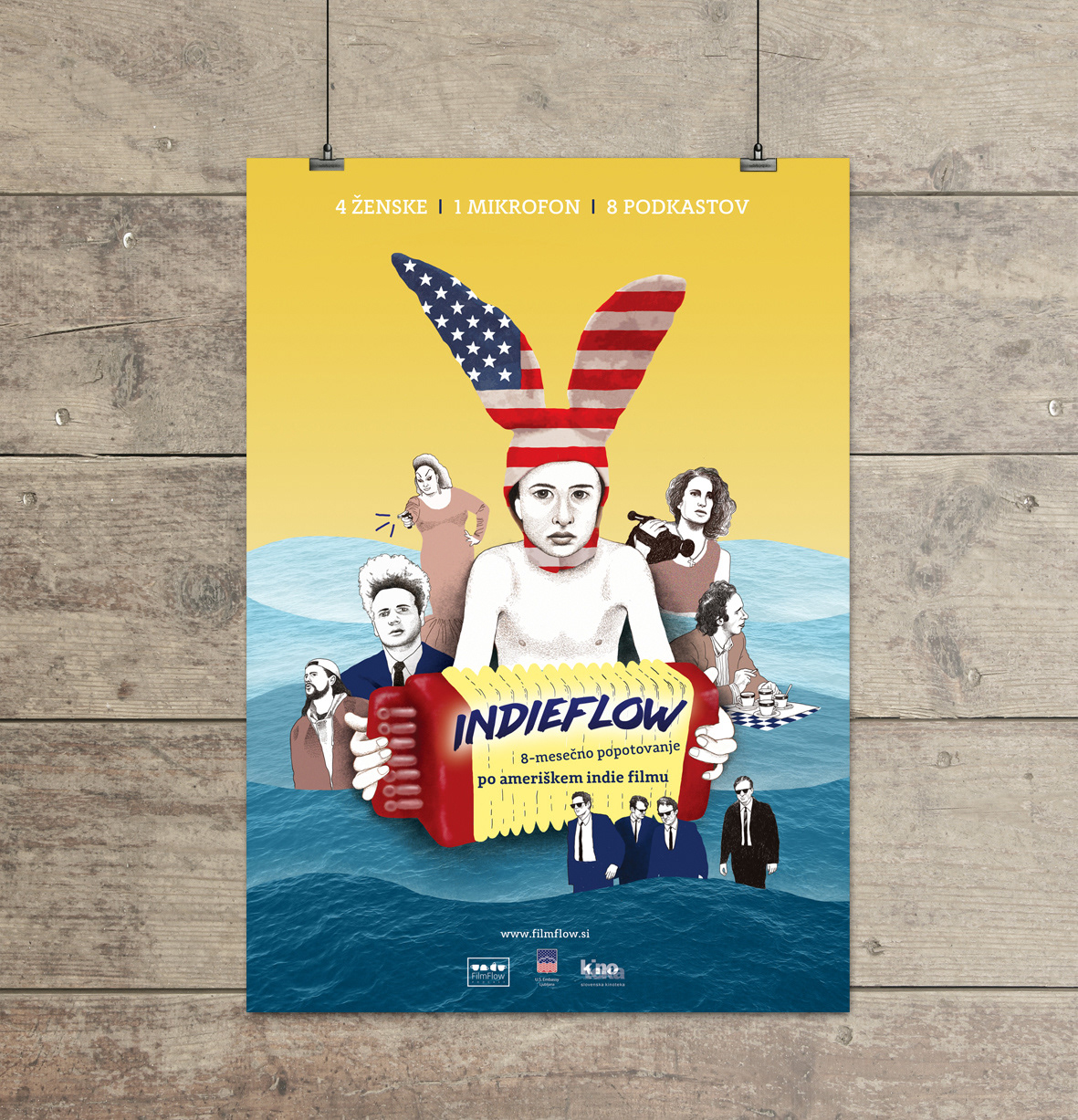 Being a big filmophile I was very happy to make the artwork for IndieFlow, series of podcasts about American indipendent cinema. For the poster, I used characters from 6 classical indie movies: Gummo (1997), Coffee and Cigarettes (2003), Pink Flamingos (1972), Sex, Lies, and Videotape (1989), Clerks (1994) and Reservoir Dogs (1992). (FilmFlow, october 2016)