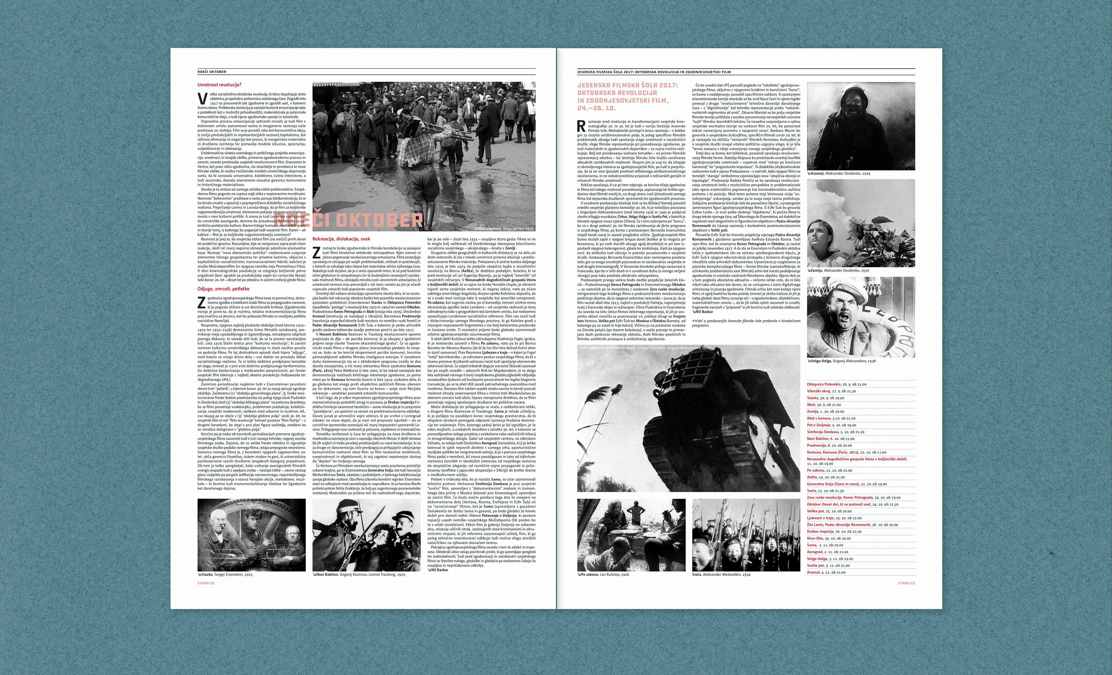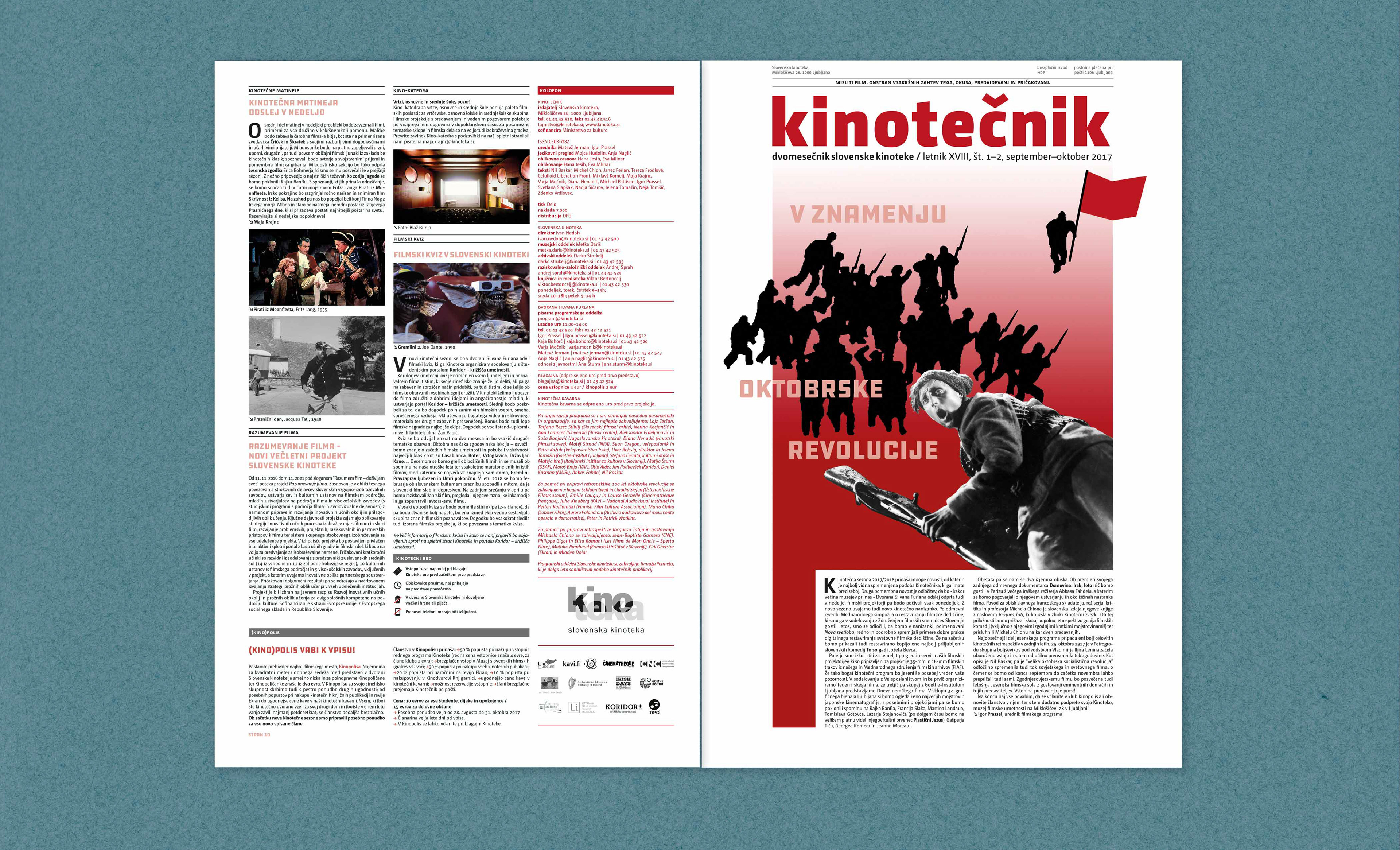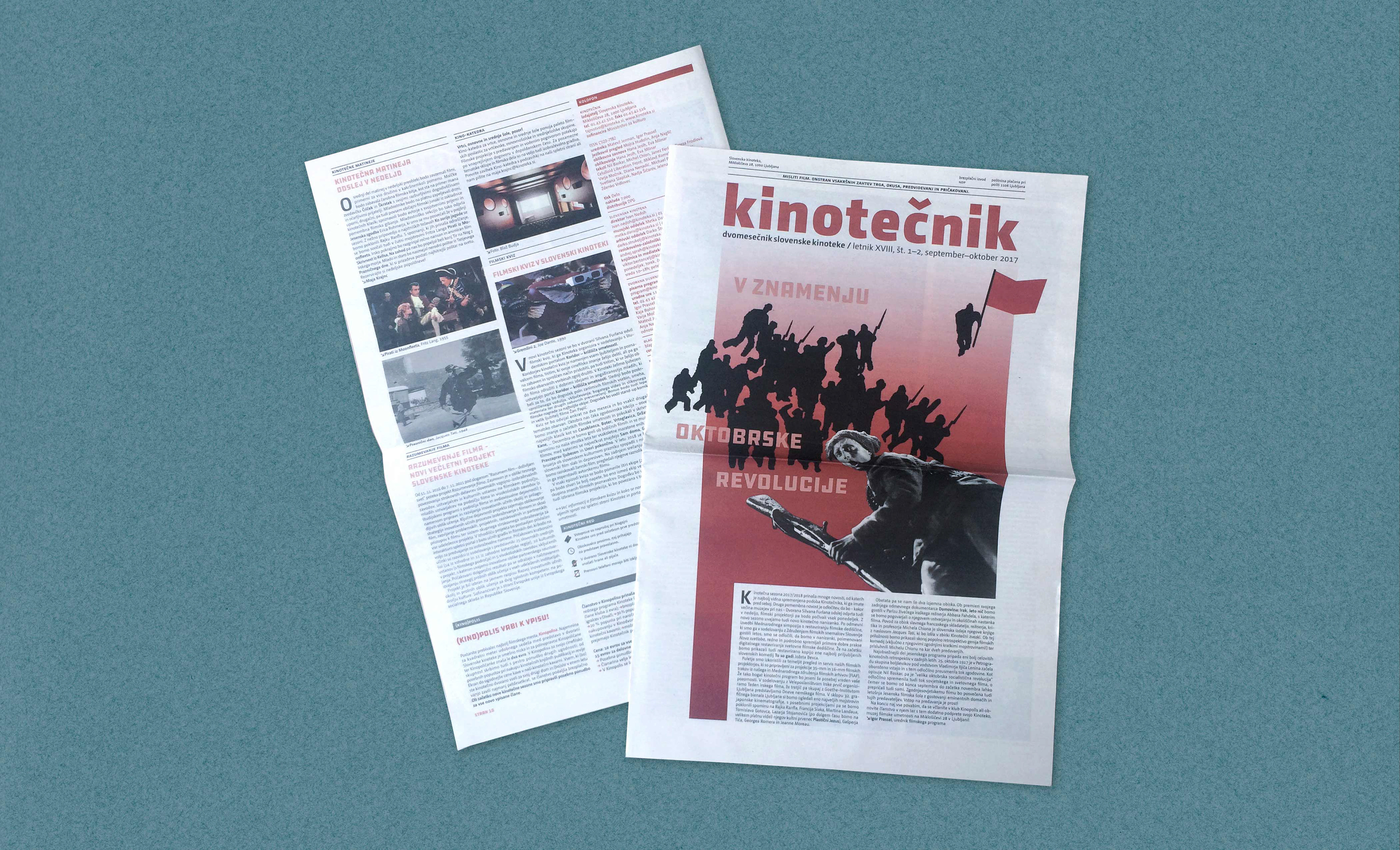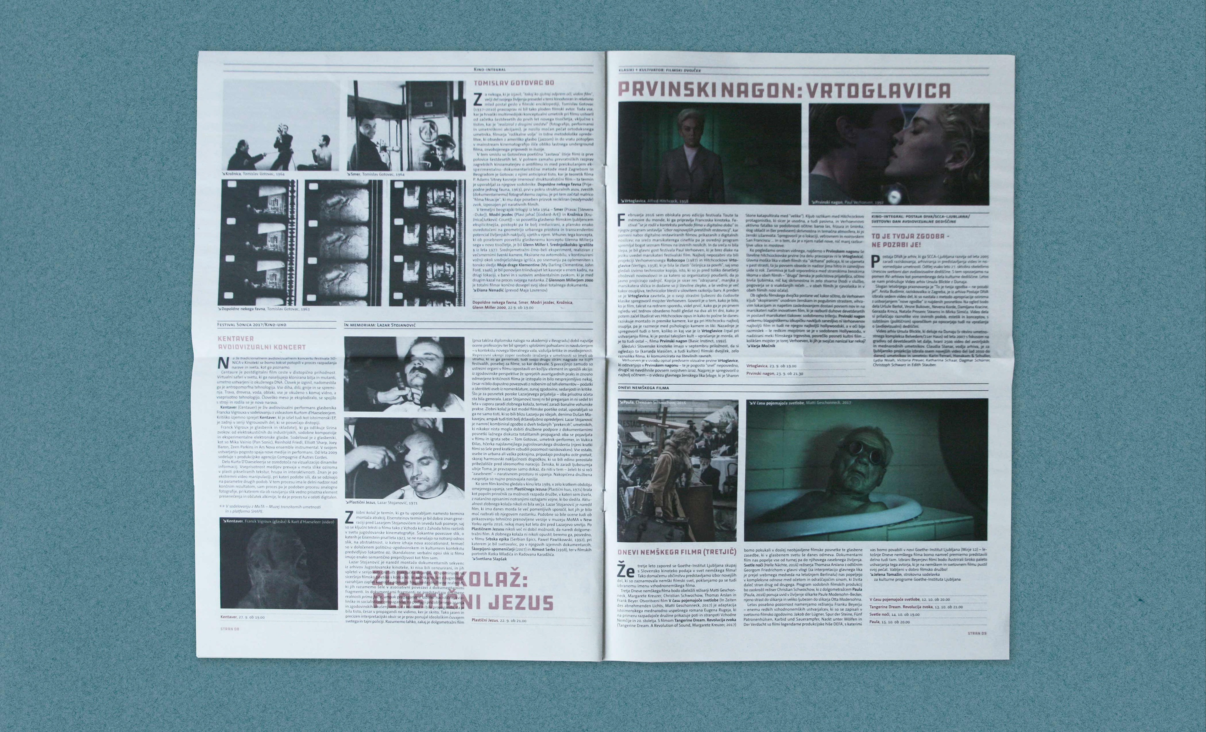 Re-design of magazine Kinotečnik, client: Slovenska kinoteka (Slovenian Cinematheque), collaboration with Hana Jesih, 2017 / Re-design of a magazine for the Slovenian Cinematheque. Publication presents the Slovenian Cinematheque, their events and their current program of cinema auditorium. It also include critiques and reports on old and contemporary films. Magazine release every two month, each time with different main topic. Collage-cover & typography for titles are visually based on the theme of the selected issue.