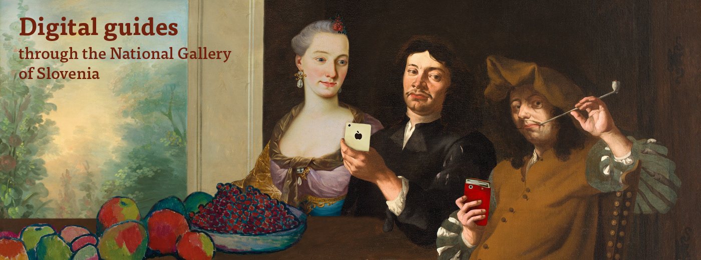 Materials for National Gallery of Slovenia - graphic design/illustration for summer workshop - learning French and Japanese through art and new Digital guides through the Permanent Collection. I made collage illustrations combining elements from different paintings from National Gallery Collection.