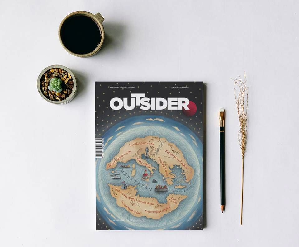 Illustrated cover for summer issue of OUTSIDER magazine - international magazine about space, culture and interesting people, connecting arhitecture and design, painting and philosophy.