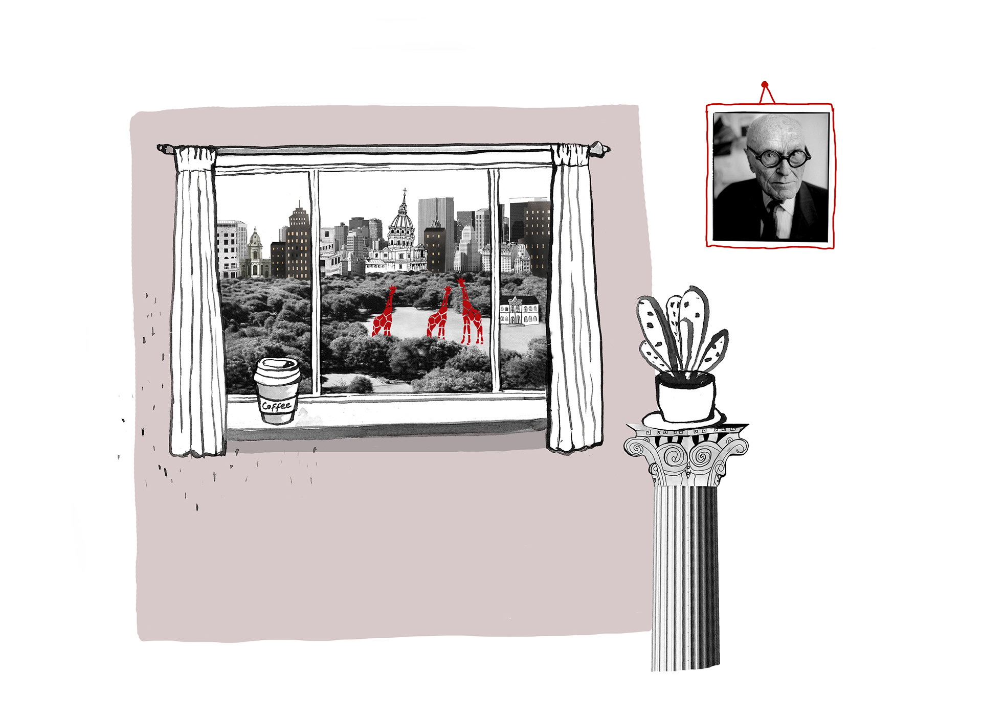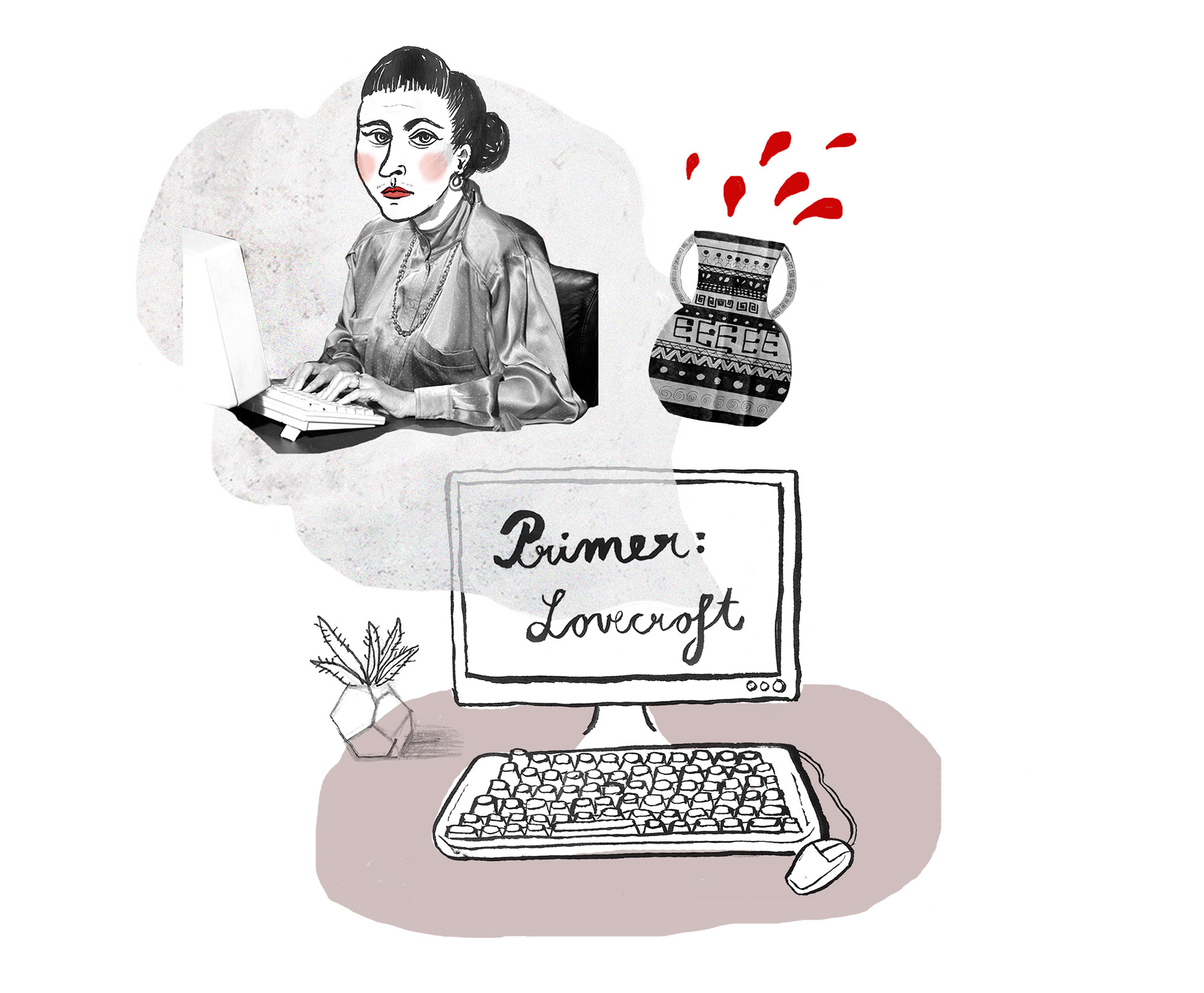 Illustrations for online "soap opera" sequels about architectural bureau Vitruvius and family Hagenbohn. Written by Eva Mahkovic. "Biro Vitruvius ima v lasti stara rodbina arhitektov Hagenbohm, ki so s stoletji tradicije postali praktično kraljeva družina Pärnuja. Najstarejši član in trenutni vodja klana je Ludvik-Daniel Hagenbohm, rojen 16. junija 1924. Živi v vili Križ in Karolina, v kateri se je leta 1967 na otvoritveni zabavi smrtno ponesrečila njegova žena Edita Nehr. V vili živijo tudi Ludvikova sinova Daniel in Frank L. in vnukinja Alma. Sinova Pavel in Oton že pokojna. Družina Hagenbohm je številčna, a znamenito nesrečna: v številnih generacijah je bilo nenavadno veliko nasilnih ali zgodnjih smrti, zato je toliko bolj pomembno, da se dobro razmnožujejo. V biroju in v vili Križ in Karolina visi njihovo družinsko drevo. Zelo razvejano je: tisti člani, ki niso v arhitekturi (ali vsaj medicini, farmaciji in biologiji – zaradi družinske hipohondrije) so izžgani iz tapiserije." Published in Outsider magazine outsider.si/category/vitruvius/